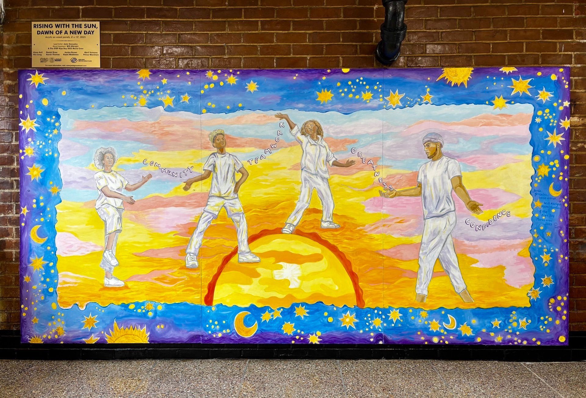 3 panels, acrylic on mounted canvas, 38' x 8'